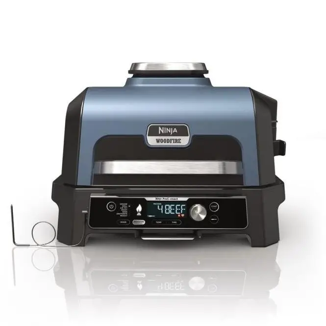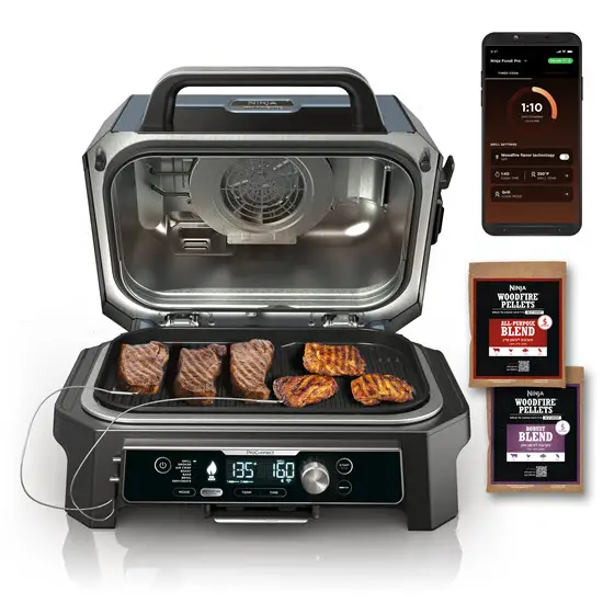 BBQ SMOKER: قابلیت پخت اسموکی در گریل باربیکیو برقی نینجا مدل OG901 در واقع همان فرایند پخت woodfire است که با شعله ور شدن آتش چوبهای مخصوص صورت میگیرد. تجربه پخت اسموکی با طعم و عطر دودی و خاص، به ذائقه هر فردی خواهد نشست و نهایت لذت را از یک غذای کبابی خواهد برد. برای استفاده از این قابلیت لازم است که یک اسکوپ از 2 جعبه چوب همراه دستگاه را در جایگاه مخصوص کناری در دستگاه بریزید و با انتخاب برنامه مناسب، پخت متفاوت و فوق العاده را آغاز کنید.